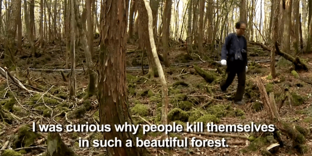 In the video, we follow around an extremely wonderful man who frequently searches the forest to help those who are contemplating suicide, as well as to hopefully bring closure to families and friends who are missing loved ones suspected of going into the forest.